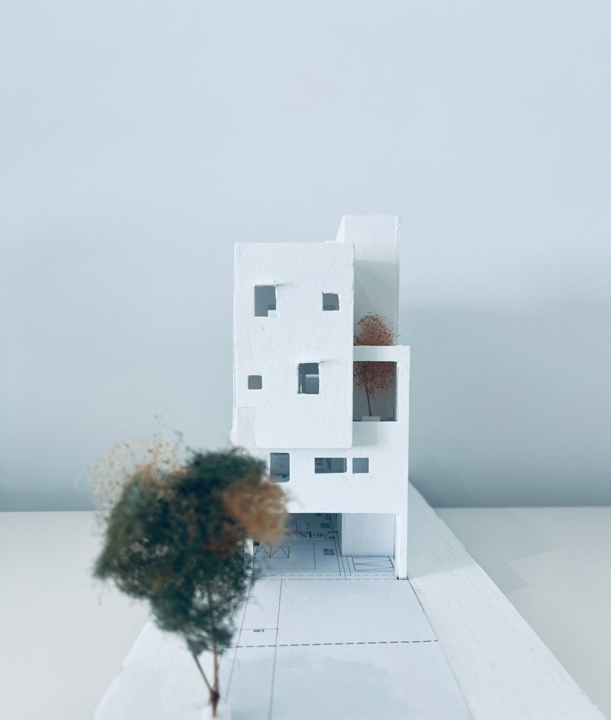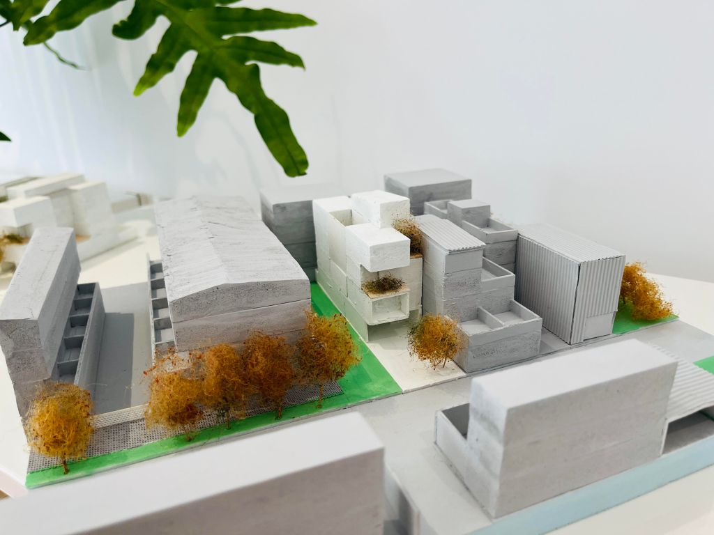 基地位處臺南市南區新開發區塊,周遭環境多為三樓半至四樓透天純住宅使用,而基地座向上為坐東正朝西向,因此如何解決嚴重西曬問題,成為此基地一首要面對課題。而空間機能上,社區式日間照顧中心的設定,是我們較少碰觸到的空間議題,透過一些案例的研究發現,如何讓長者對此場域產生認同感進而有回到家一般的感受,是我們需要加以著墨的重點。