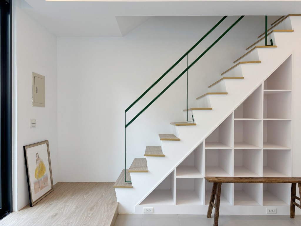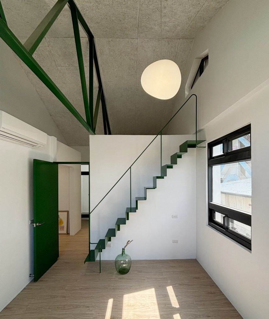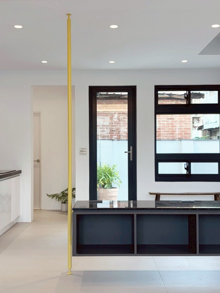 卸下為臨用而搭起的天花、隔間,加入了數個帶有色彩的空間元素,使其成為富有質調的生活基底。